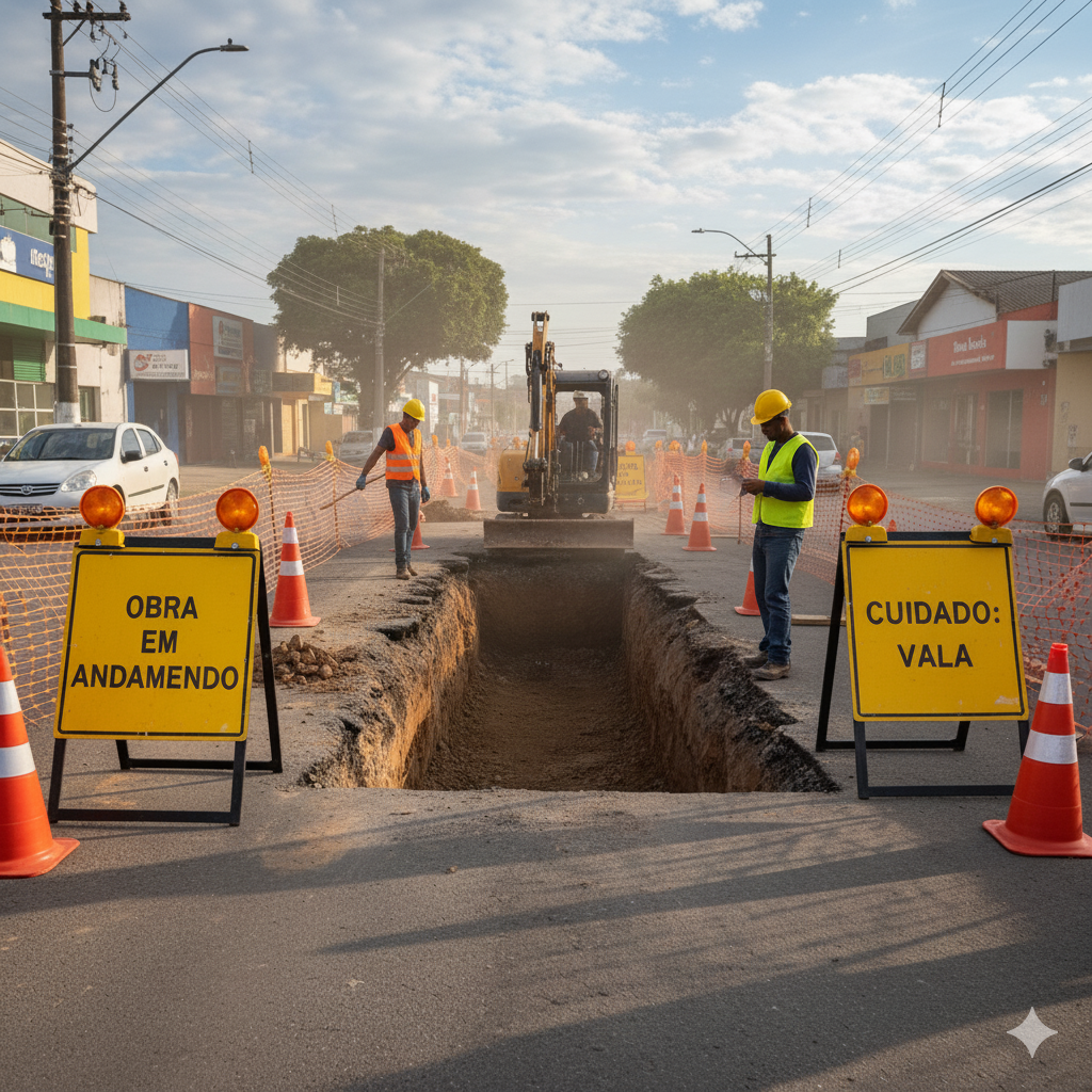 Execução, com fornecimento parcial de materiais, das obras e serviços de ampliação e melhorias do Sistema de Esgotamento Sanitário da sede municipal de Perdões / MG.